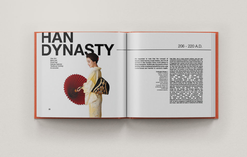 American Beauty Standards is a chapbook that takes readers on a journey through history to uncover how American beauty standards came to be. The main focus of this project was managing large amounts of text, focusing on hierarchy, and balancing imagery with text. I chose an informational topic for this chapbook, which fills 55 pages.